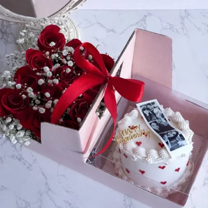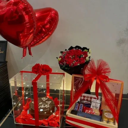 Rose box with heart balloon